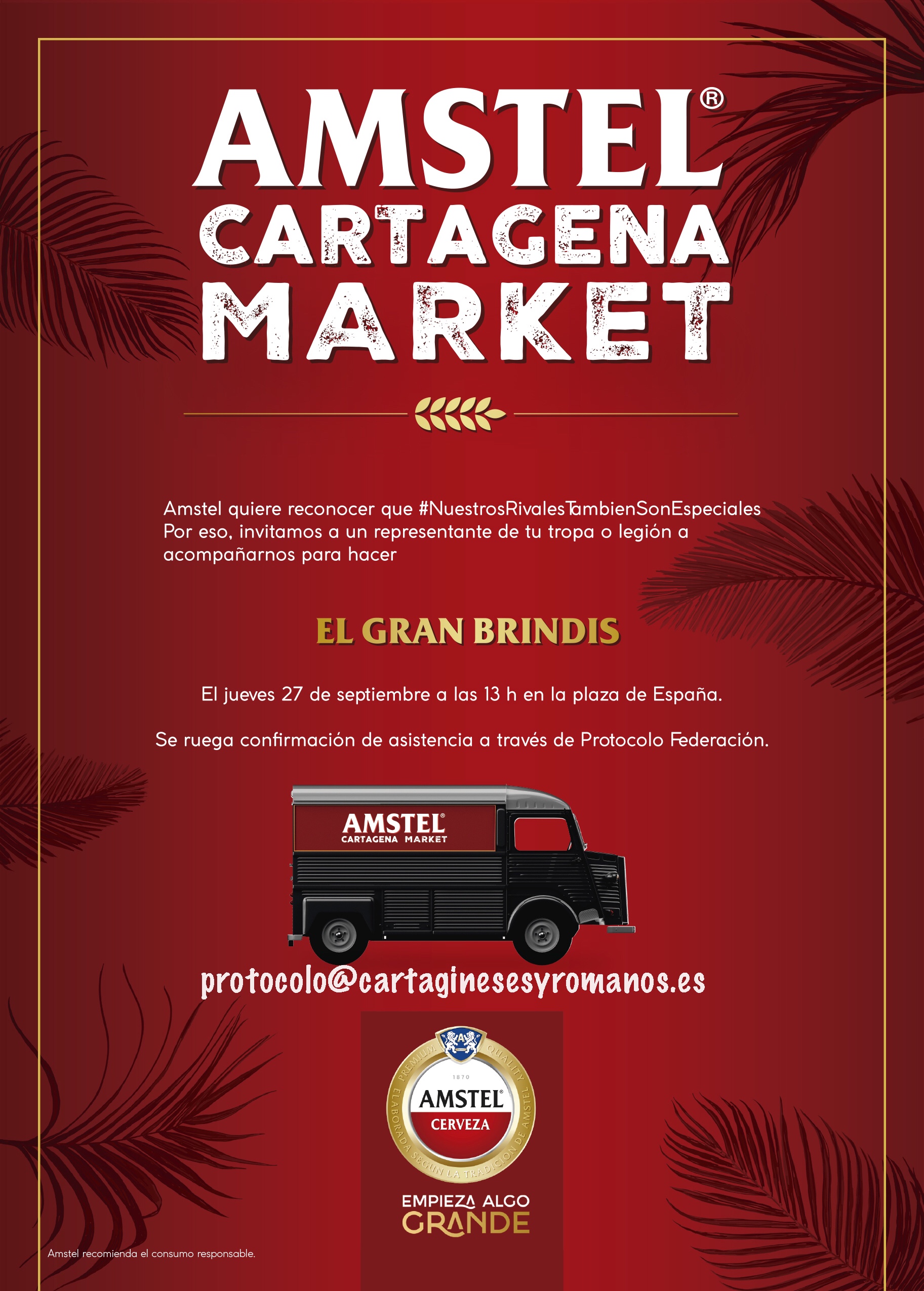 Te invitamos a “El Gran Brindis” Una iniciativa de Amstel y una gran manera de celebrar nuestras fiestas de Carthagineses y Romanos. El próximo Jueves 27 de septiembre a las 13:00h en la Plaza de España