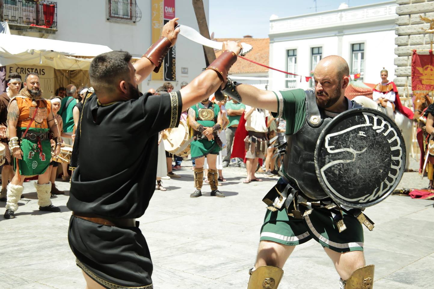 Invitados por la Cámara de Comercio de Beja (Portugal), acudimos a Beja Romana 201. Es una de nuestras “invasiones” de este año, donde algunos representantes de tropas y legiones, en lo que llaman Cortejos, recorrían las calles de esta ciudad escoltando a los mandatarios, mientras rememoraban historias en forma de actos, de la invasión romana que también sufrieron al igual que en el resto de la península ibérica. En definitiva Beja Romana 2017 es una fiesta multicultural donde se juntan leyendas, arte, historia y batalla.